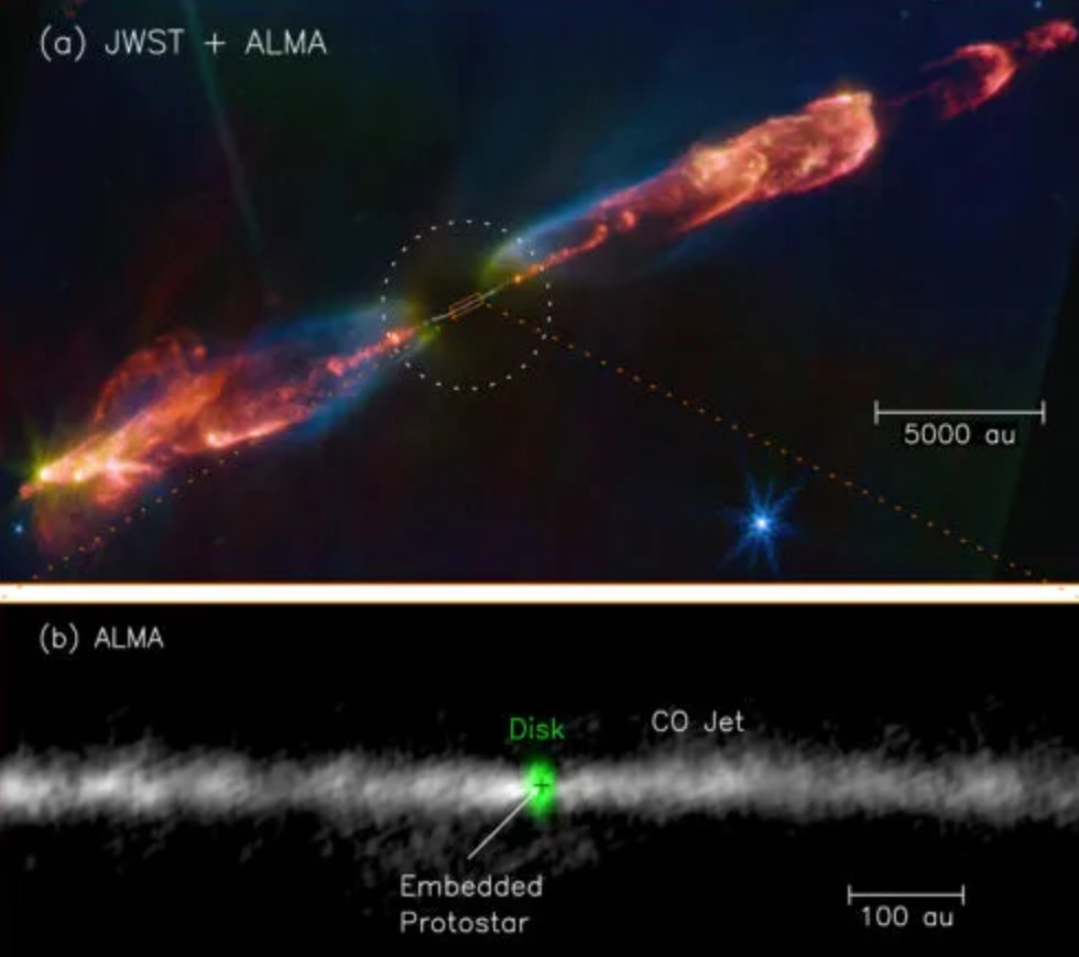 Однією з головних загадок утворення нових зірок є те, як вони накопичують матерію під час формування. Уперше астрономи за допомогою космічного телескопа Вебб і наземного радіотелескопа ALMA змогли знайти місце народження високоенергетичного газового струменя, який відіграє важливу роль у формуванні зірок. Дослідження опубліковано в журналі Scientific Reports, пише Live Science.