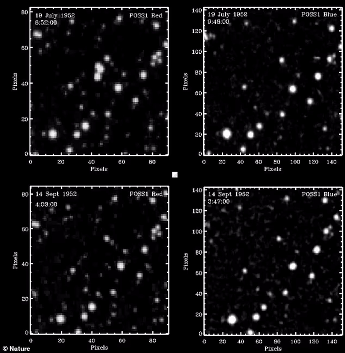 За словами докторки Вільярроель, вони з доктором Стівеном Брюлем проаналізували загадкові зіркоподібні об'єкти, зафіксовані на старих знімках, отриманих у рамках огляду неба Паломарською обсерваторією в Каліфорнії в перші роки існування ядерної зброї в США, Великій Британії та Радянському Союзі.