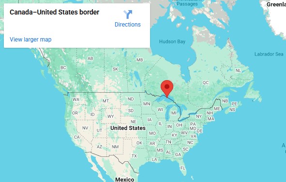Кордон між США і Канадою складається з двох основних ділянок на карті світу. Це довгий кордон, який горизонтально перетинає Північну Америку, а також коротший вертикальний кордон, який проходить між Аляскою і Канадою на північному заході континенту.