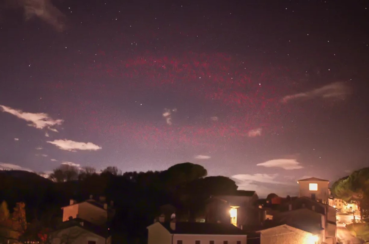 На частку секунди над північною Італією в нічному небі з'явилося величезне червоне кільце, що світиться. Один фотограф опинився в потрібному місці в потрібний час, пише Space.