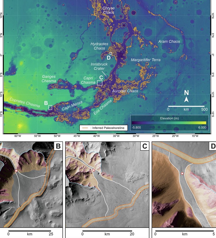 Попередні дослідження вже показали, що на Марсі в минулому існували річки й озера, а також моря з рідкої води і, можливо, навіть океан. Тепер же вчені знайшли, за їхніми словами, більш переконливі докази наявності річок, а також величезного океану на Марсі. Вчені виявили структури в Долині Маринер, що нагадують дельти річок на Землі і ці річки, як показує дослідження, впадали в океан. Нове дослідження надає переконливі докази існування берегової лінії і того, що океан на Марсі існував раніше, ніж передбачалося. Дослідження опубліковано в журналі npj Space Exploration, пише Phys.