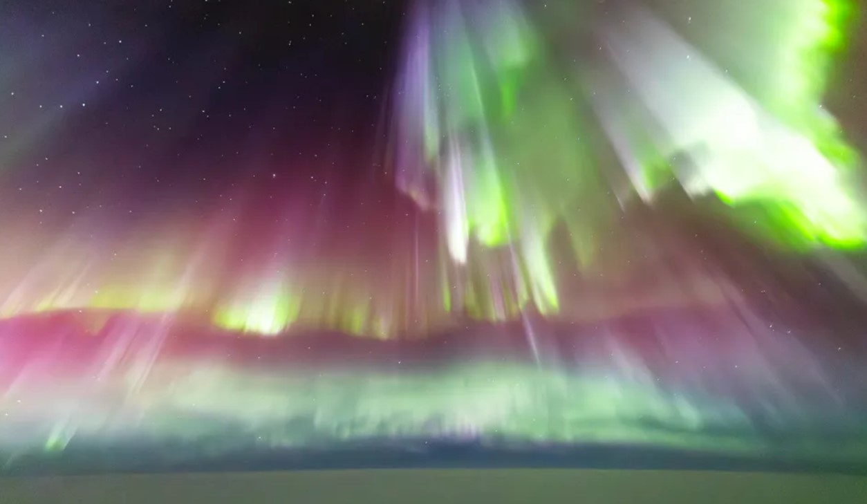 Фотографії вражаючого полярного сяйва зробив пілот літака Boeing 787 Dreamliner під час сильної геомагнітної бурі рівня G4. Це була одна з найсильніших магнітних бур на Землі за останні роки.