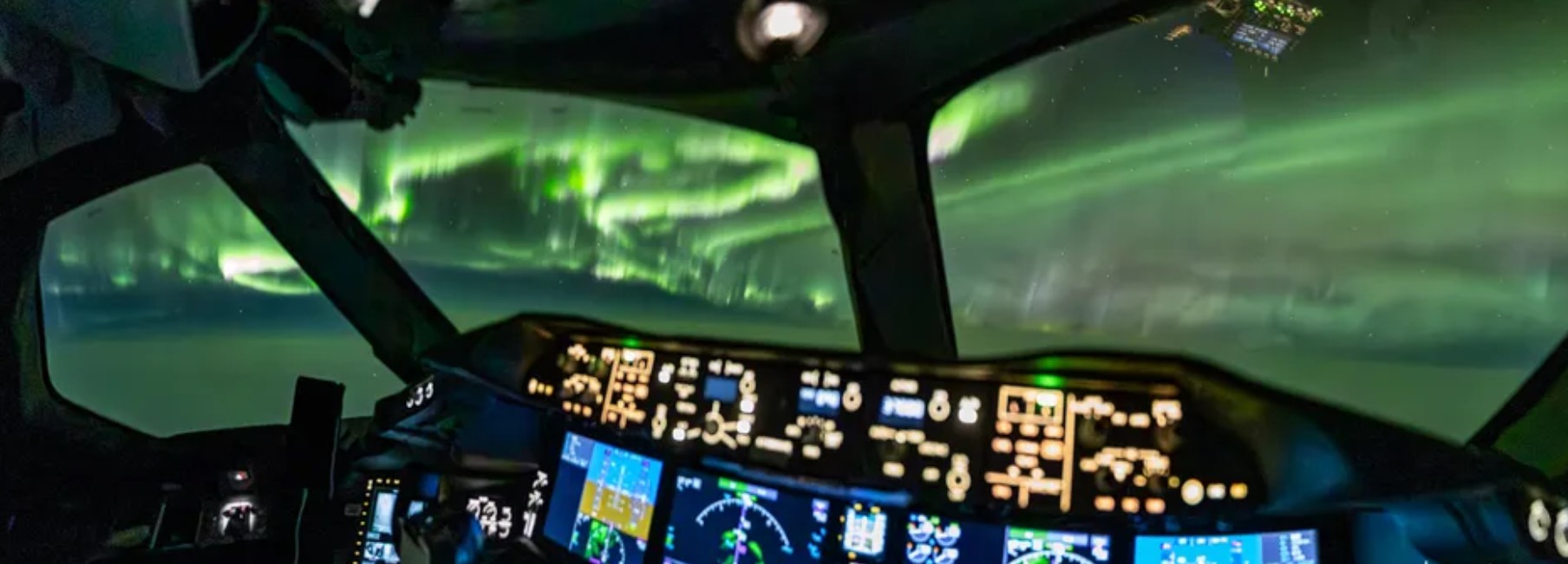 З крейсерської висоти таких літаків, як Boeing 787 Dreamliner, високо над хмарами і далеко від світлового забруднення міст, полярне сяйво може здаватися яскравішим, чіткішим і масштабнішим, ніж із землі.