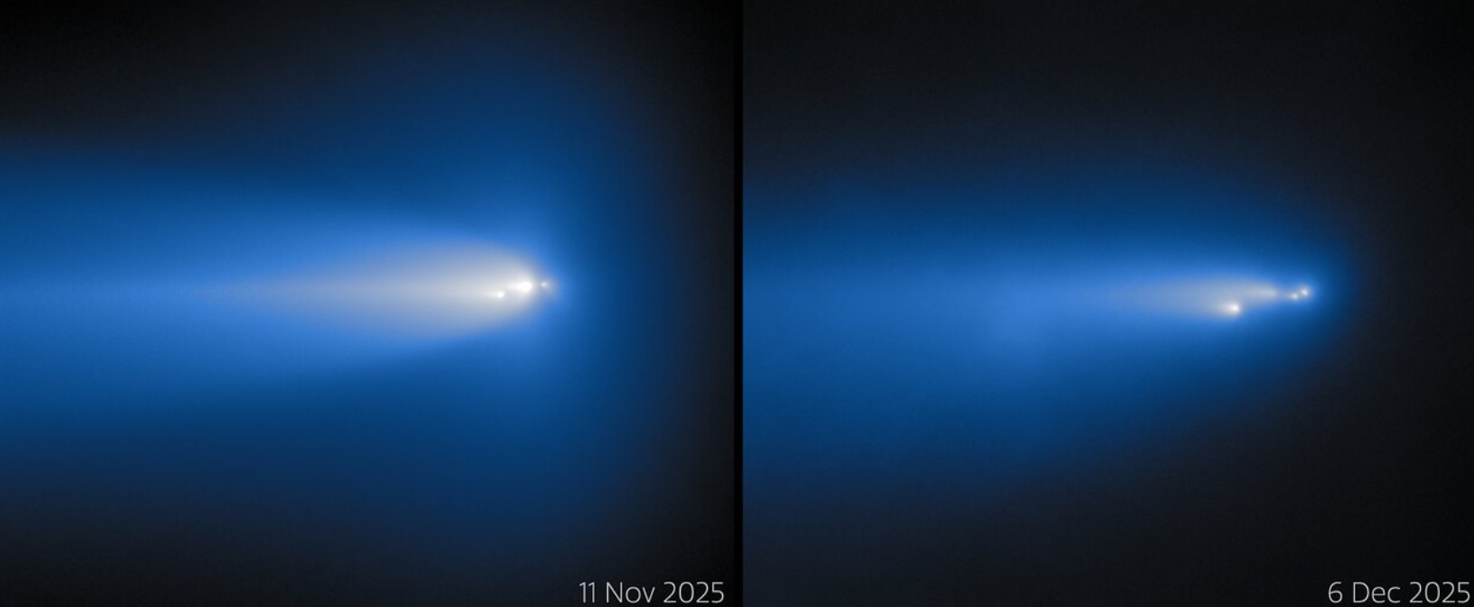 Зображення довгоперіодичної комети C/2025 K1 (ATLAS), яка розпалася щонайменше на три частини, було зроблено за допомогою телескопа в обсерваторії "Джеміні південь" 11 листопада і 6 грудня. Цими фотографіями астрономи поділилися тільки зараз.