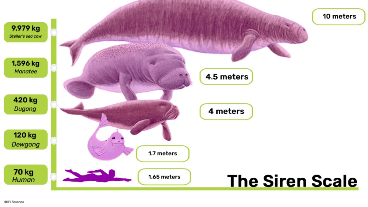 За словами дослідників, довжина цих морських корів становила близько 10 метрів, а товщина шару жиру — майже 23 сантиметри, а їхня вага сягала значних 9 979 кілограмів, що робило тварин ласою здобиччю для людини. Тому не дивно, що скелетні останки стеллерівської морської корови, знайдені в Сибіру, були прийняті за морське чудовисько.