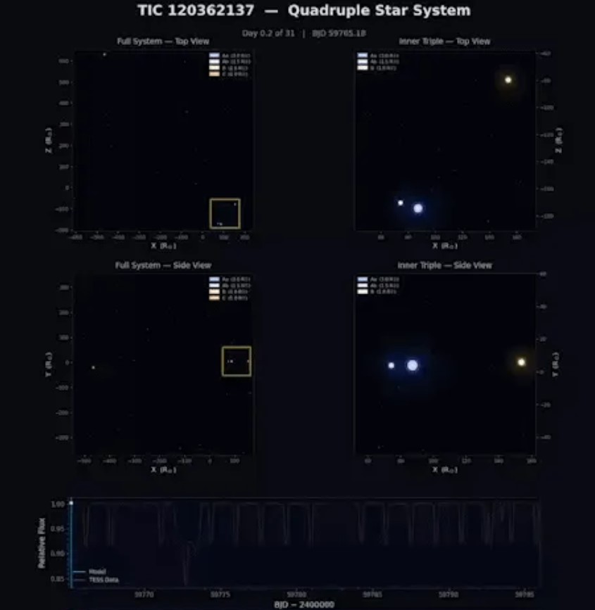 За словами вчених, зоряна система TIC 120362137 є найкомпактнішою з відомих четверних зоряних систем типу 3+1.