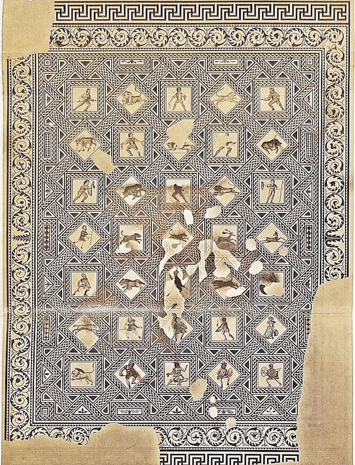Малюнок мозаїки, зроблений археологом, який першим її виявив