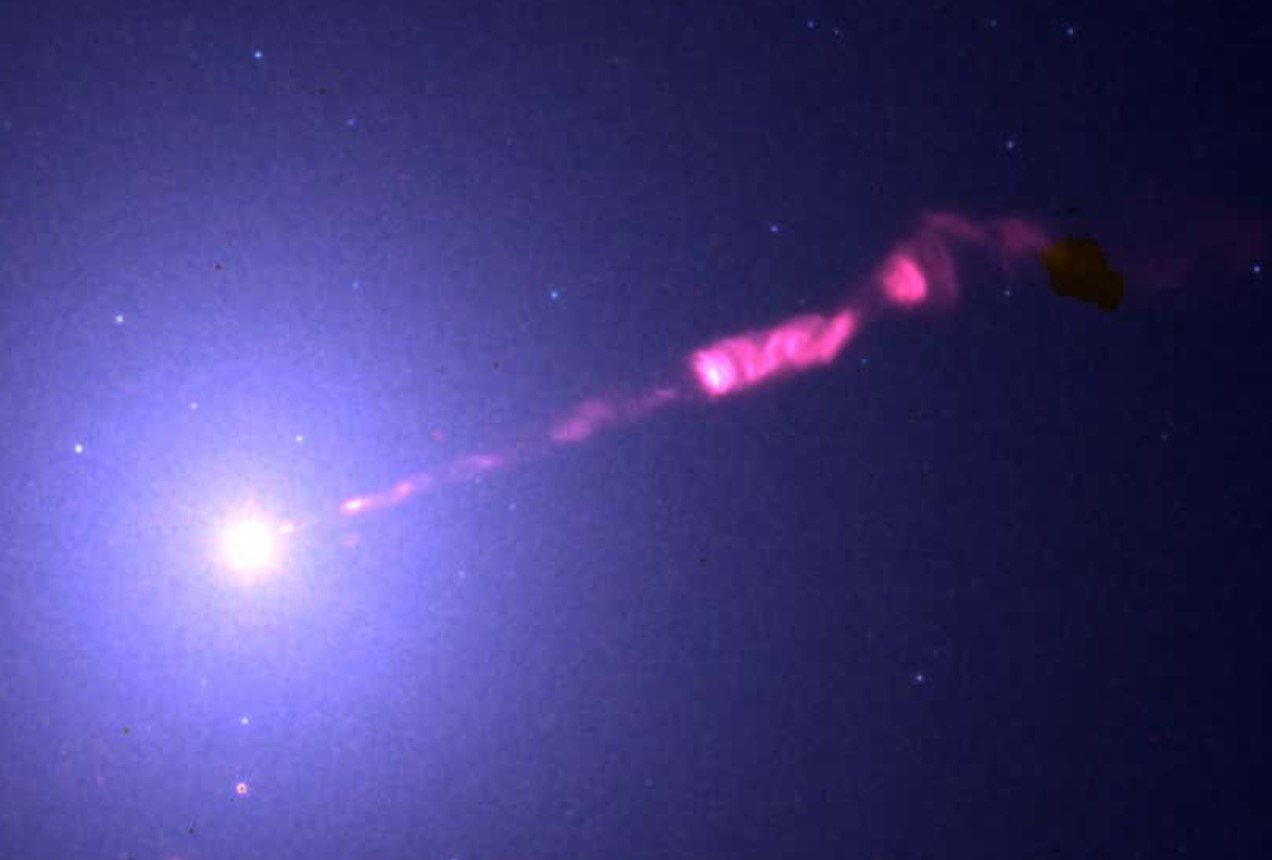 Однією з головних особливостей чорної діри M87* є її колосальний струмінь із плазми, що простягається в космос приблизно на 5000 світлових років. Чорна діра поглинає матерію з аккреційного диска, але її дуже сильні магнітні поля спрямовують честь речовини до полюсів чорної діри, де вона викидається у вигляді колосального струменя. Ця матерія не перетинає горизонт подій чорної діри.