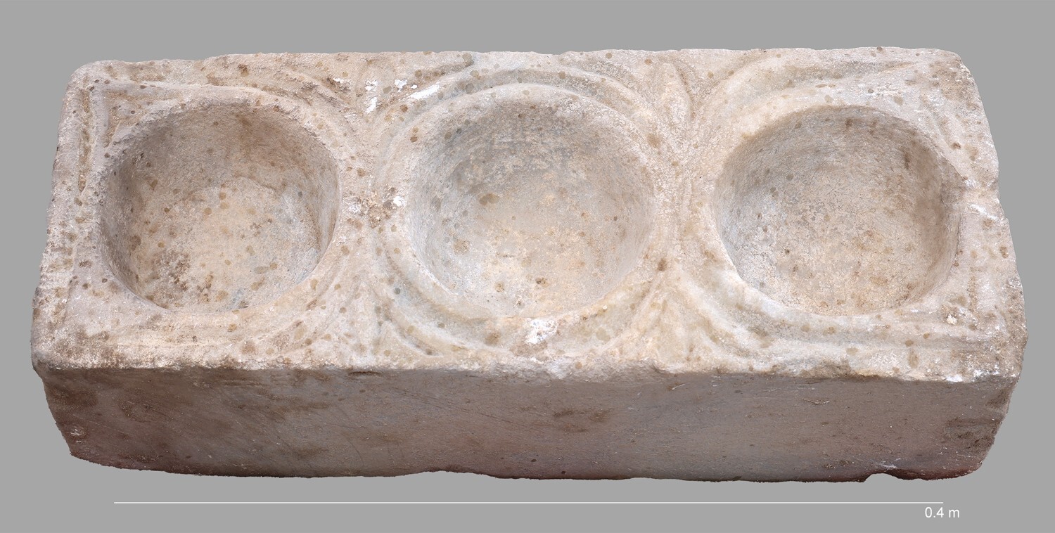 Серед знахідок був мармуровий блок з трьома півсферичними порожнинами. Дослідники вважають, що ці отвори, ймовірно, містили різні священні олії, які використовувалися під час хрещення. Ранньохристиянські ритуали часто включали кілька етапів помазання, і цей предмет може вказувати на триетапний процес, який раніше не був чітко задокументований.