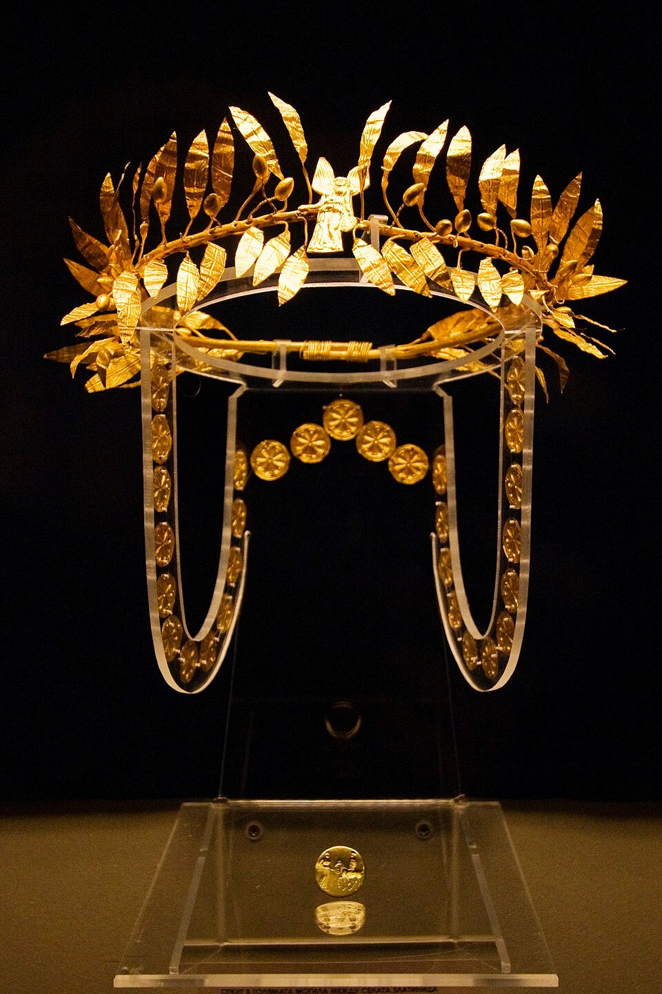 Артефакт має форму, що нагадує лаврий вінок — символ, який у стародавніх культурах асоціювався з перемогою, владою та божественним схваленням. Його витончено викарбувані листки свідчать про високий рівень майстерності фракійських металістів.