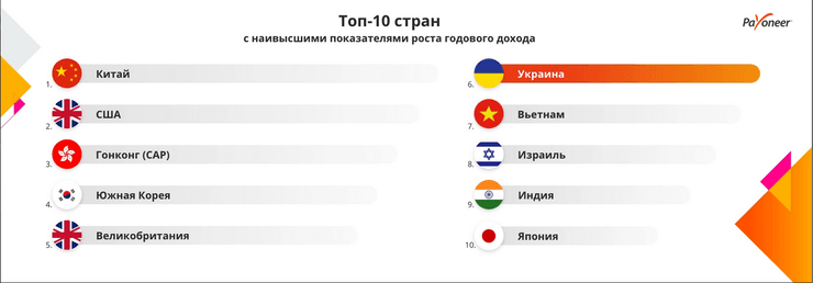 Нашій країні вдалося обігнати в рейтингу В'єтнам, Ізраїль, Індію і Японію, які зайняли наступні за Україною місця в ТОП-10.