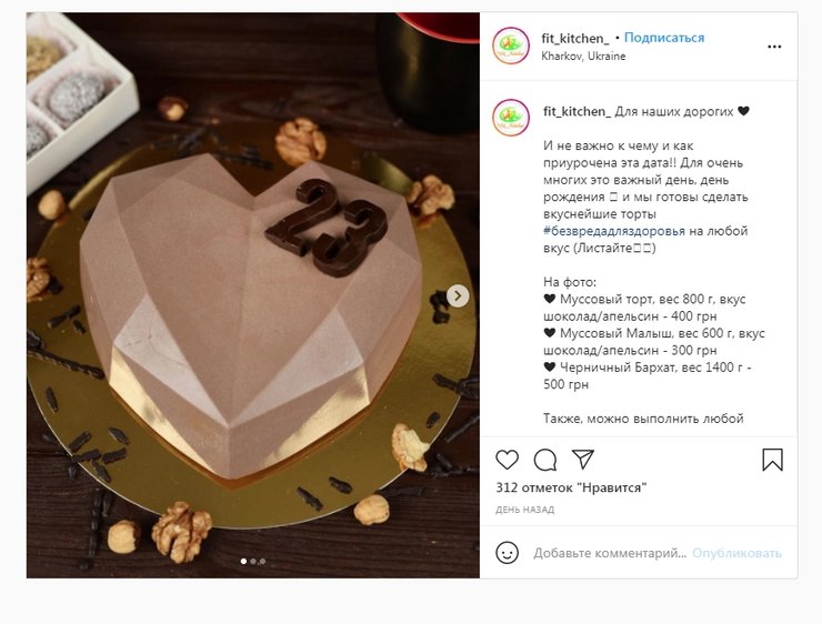 "І не важливо, до чого і як присвячена ця дата. Для дуже багатьох — це важливий день, день народження. І ми готові зробити смачні торти на будь-який смак", — сказано в повідомленні Fit kitchen в Instagram.