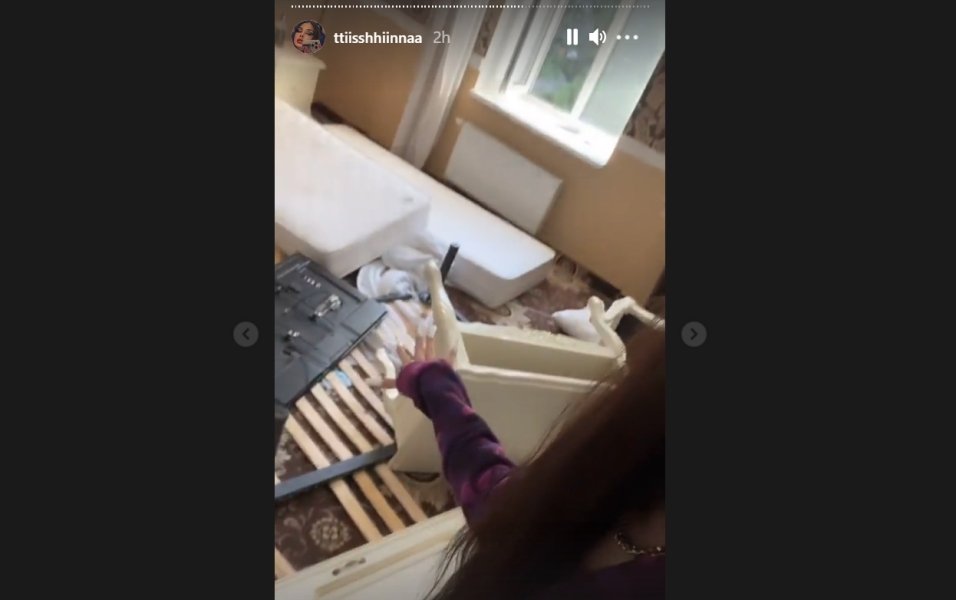 Дівчина розмістила кілька сторіз, на яких разом із друзями випивала і розважалася в готелі. Блогерка підкреслила, що вони зняли два номери. На кадрах можна помітити обмальовані стіни та дзеркало у ванній, залиту водою підлогу, перевернуті меблі. Як вона зізналася на камеру, молодик на ім'я Сергій зламав ліжко, яке йому "не сподобалося". Крім того, в одному з роликів молоді люди намагалися повісити на місце телевізор, який зрештою остаточно впав. За словами дівчини, вона разом із Сергієм спала в іншій кімнаті, а розруху влаштували її друзі.
