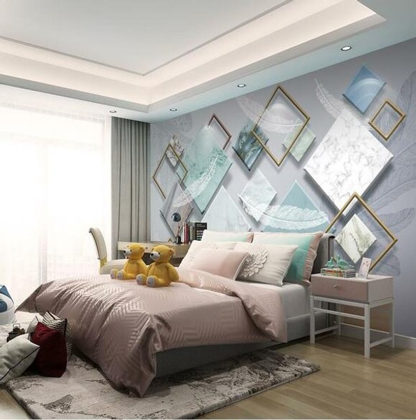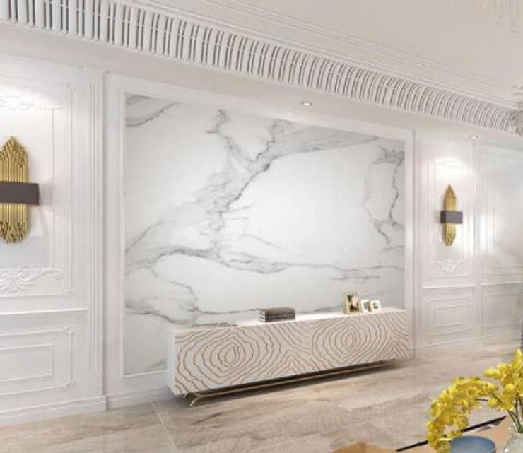 Фотошпалери пір'я і мармурові квадрати в інтер'єрі вітальні