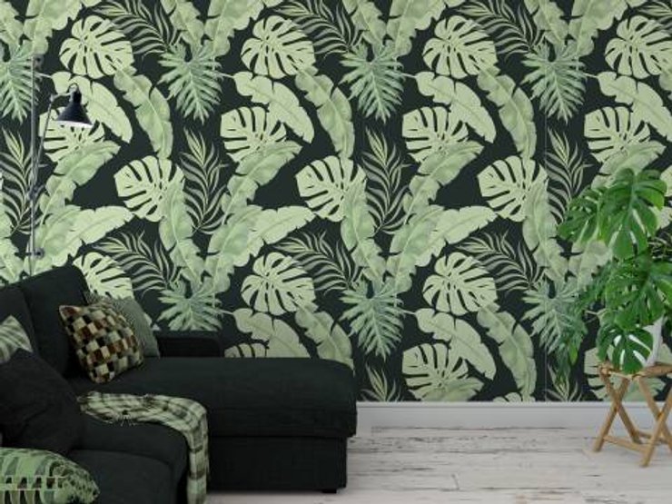 Фотошпалери Тропічні рослини в інтер'єрі спальні
