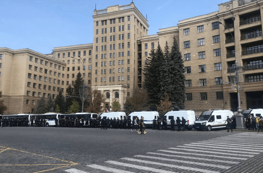 Крім цього, націоналісти з організацій "Традиція і порядок", "Фрайкор" і "Правий сектор" влаштували контрмітинг на вулиці Сумській поруч з пам'ятником Тарасу Шевченку. Акція супроводжувалася перформансом — традиціоналістів зв'язали і поклали на землю.