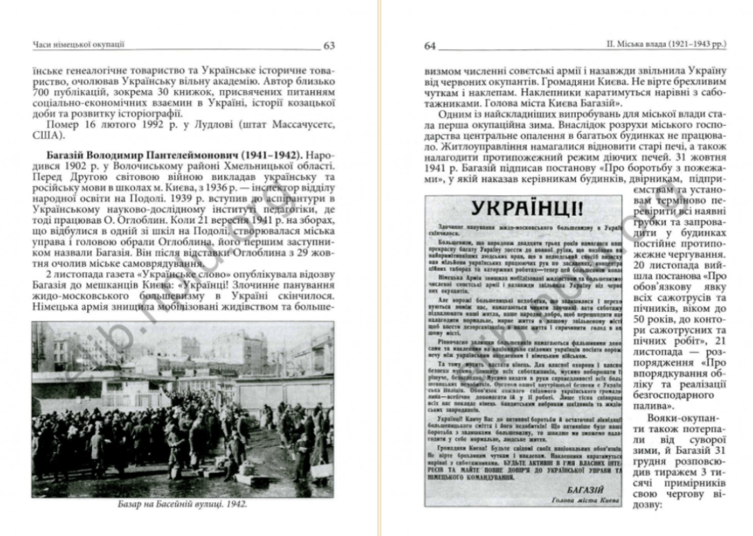 За даними з книги, написаної ексглавою КМДА, бургомістр Києва Володимир Багазій у 1941 році закликав допомагати німецьким солдатам одягом і хвалив їх за звільнення України від "ж*до-більшовиків".