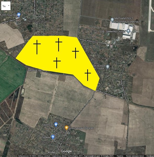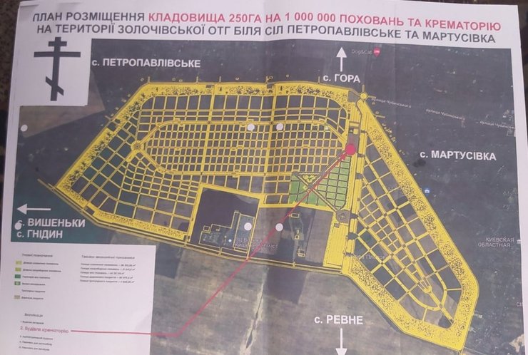 Поруч із міжнародним аеропортом "Бориспіль" між селами Петропавлівське та Мартусівка може з'явитися величезний цвинтар площею 250 га на мільйон могил. 26 вересня на місці потенційного будівництва відбувся масовий протест жителів Золочівської та Горської місцевих громад. Про це повідомляє Facebook депутата Горської сільради Олександра Карасевича.