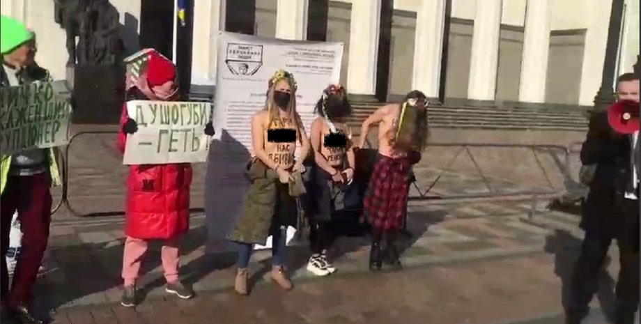 Під Радою голі активістки вимагали припинити "тарифний геноцид" (фото, відео)