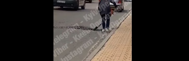 У Подільському районі Києва городянин самостійно залатав ями на дорозі, проте незадоволена жінка наново розрила їх. Відеозапис конфлікту опублікувало співтовариство "Оперативний" у соціальній мережі Facebook.