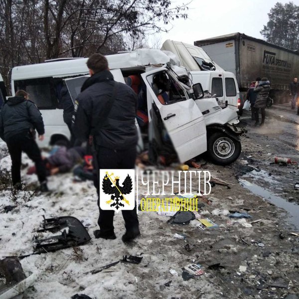 Під Черніговом вантажівка врізалася у маршрутку, 11 загиблих (фото)