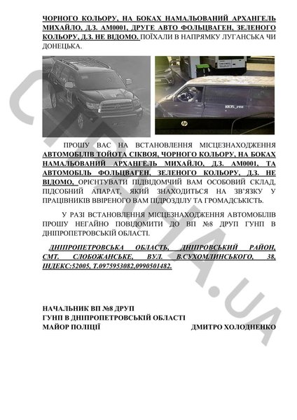 Як повідомляють, затримання пов'язане із подією 31 травня на заправці "ОККО" у Дніпропетровській області на трасі Знам'янка – Луганськ – Зварино. За інформацією журналістів, кілька людей, одягнених у цивільне, представилися співробітниками СБУ, після чого напали на українських військовослужбовців. У них забрали автомати, а також викрали два автомобілі — чорну "Тойоту Секвоя" із зображенням архангела Михайла з боків та зелений "Фольксваген". На них група зловмисників поїхала в напрямку Донбасу.