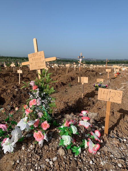 Лише на одному боці імпровізованого цвинтаря журналісти нарахували понад 3 тисячі могил. Більшість із яких позначені табличками з номерами, але без імен.