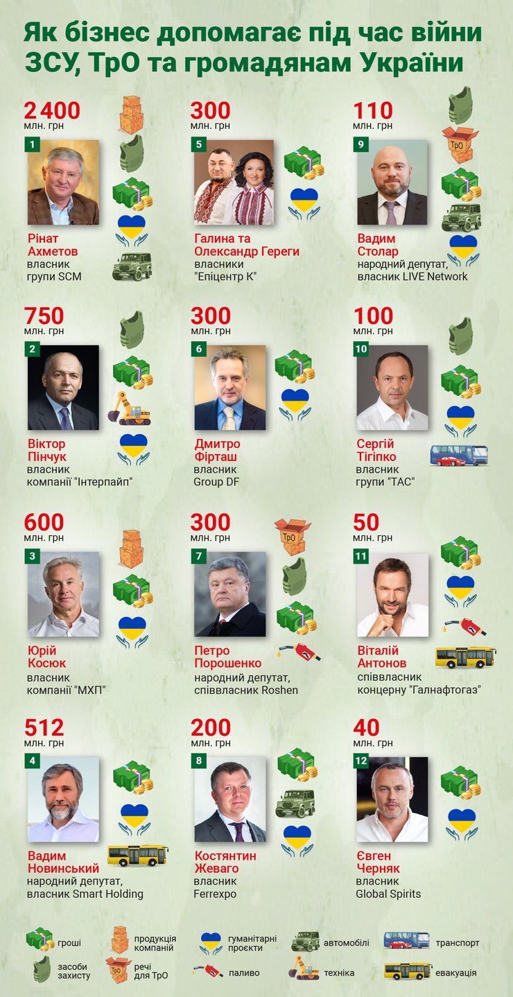 Допомога на фронті та в тилу. Рейтинг головних українських меценатів