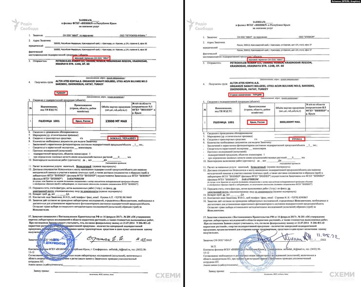 Крім супутникових знімків, журналісти отримали документи, які свідчать, що обидва судна завантажуються зерном саме у кримському терміналі "Авліта". При цьому в документах походження зерна зазначено як "Крим, Росія".