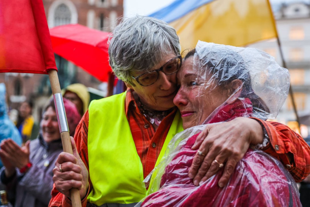 Коли я дивлюся на них, я бачу людей, які знають, що таке збирати "тривожну валізку", які чули сирени повітряних тривог, свист ракет, що летять, вибухи бомб; людей, які власноруч писали на грудях своїх дітей групу крові та номери мобільних телефонів мами й тата, які розуміють, що означає вираз "дві стіни", які знають, що таке — спати у ванній або лежати одягненим на бетонній підлозі метро; людей, які поїхали, в чому стояли, взявши тільки найнеобхідніше та залишивши, можливо назавжди, те, що настільки дороге кожному людському серцю.