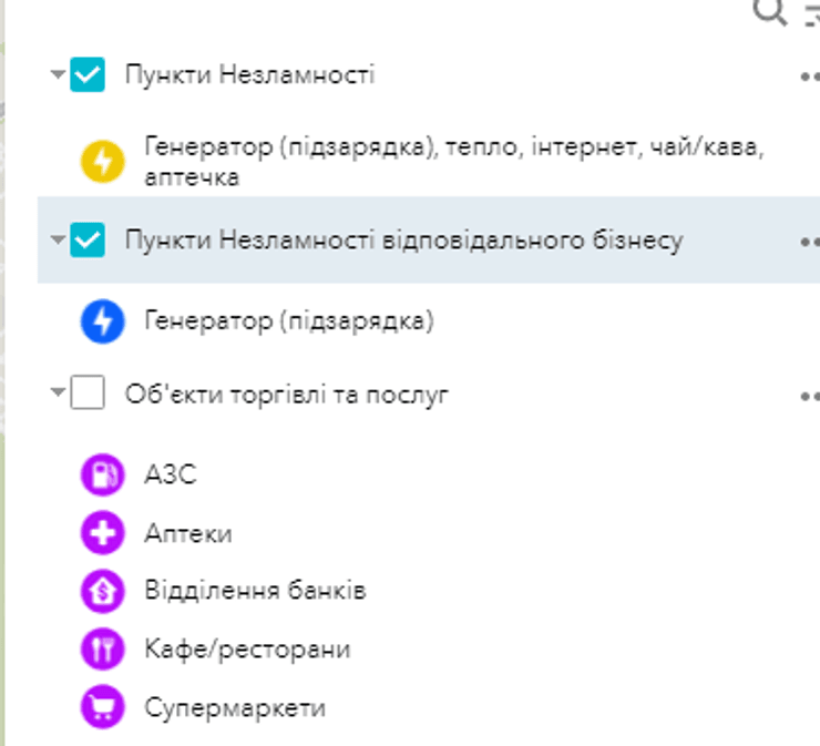 Тепер на карті відображатимуться три основні категорії "Пунктів незламності":
