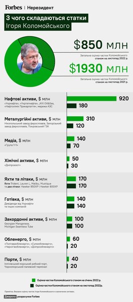 Мінус $1 млрд: Forbes підрахував втрати Коломойського через війну з Росією (інфографіка)