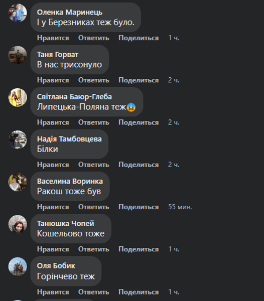 Судячи з коментарів у місцевих групах у Facebook, поштовхи відчули мешканці різних населених пунктів Хустського району Закарпатської області.