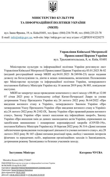 Журналісти зазначили, що за словами представників ПЦУ 5 січня вони дійсно не мали дозволу з боку заповідника, проте рішення, підписане заступницею міністра культури Катериною Чуєвою, вже було.