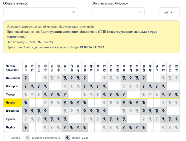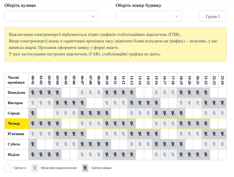 Нижче наведено свіжі графіки відключень у Києві для трьох груп споживачів: