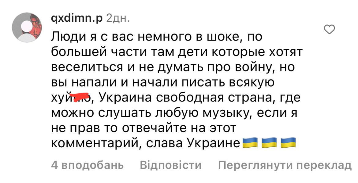 14 лютого у соцмережі потрапили кадри, на яких підлітки у Полтаві танцюють під російських реперів Моргенштерна та Басту, хоча незадовго до цього в черзі перед закладом заспівали гімн України.