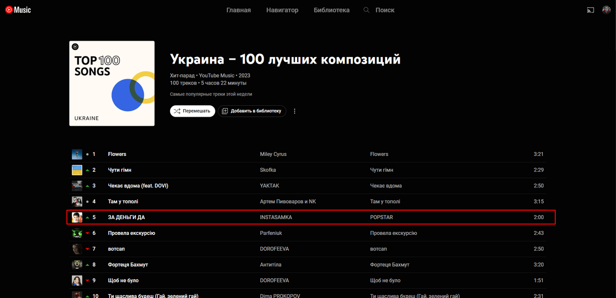 Пісня, про гонорар з якої йдеться, тримається в топах українських прослуховувань. Інстасамка займає в Apple Music передостаннє місце у топ-25 пісень, що слухають кияни, та 22-е місце у топ-100 в Україні. В топ-100 на YouTube Music та ж пісня увійшла в п’ятірку, як і в топ-50 на Spotify.