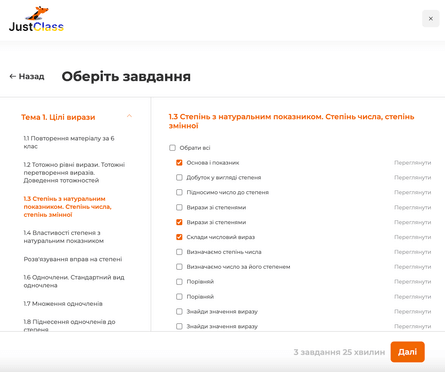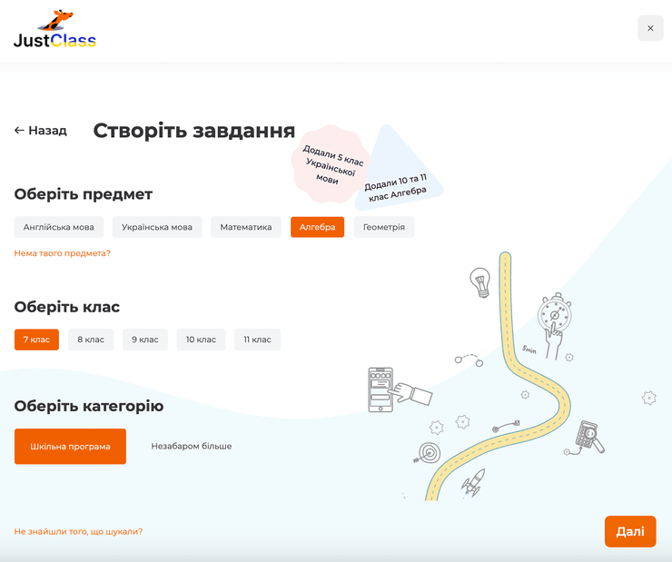 Зараз на сайті доступні вправи для 5-11 класів з математики, української та англійської мов. Команда JustClass постійно додає нові вправи й планує розробити ще завдання з інших навчальних предметів. Оскільки всі вправи відповідають шкільній програмі, то вчителі загальноосвітніх шкіл можуть спокійно користуватися цим інструментом і не хвилюватися, що вони пропустять якісь теми з навчального плану. Як це буває з іншими онлайн-платформами, де є готові тести або квести з різноманітних тем, але які часто не відповідають навчальній програмі.