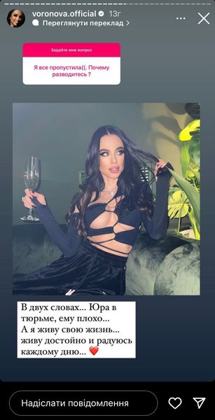Нині співачка заявляє про намір розлучитися з чоловіком. За її словами, Чернецькому "у в’язниці погано", а вона "живе своє життя".