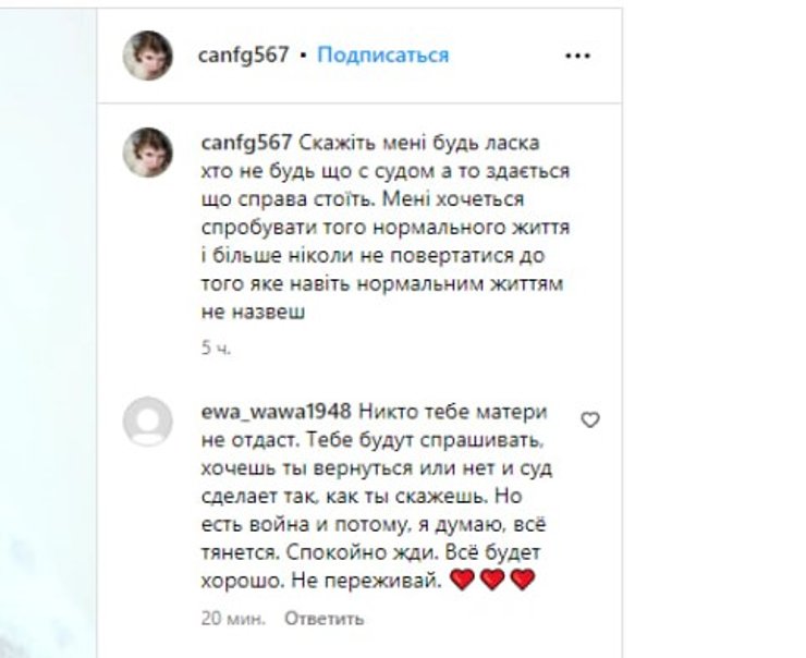"Скажіть мені, будь ласка, хто-небудь, що з судом, а то здається, що справа стоїть. Мені хочеться спробувати того нормального життя і більше ніколи не повертатися до того, яке навіть нормальним життям не назвеш", — написала дівчинка.