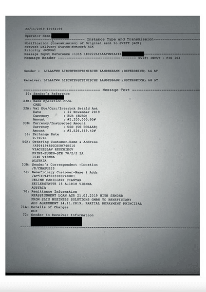 Отримання Левітіним мальтійського паспорта розслідується з огляду на підозрілий платіж, який зробив австрійський фіксер В’ячеслав Резчиков на рахунок дочки керівника офісу Фірне Селін Сіантар. Резчиков очолював структури, пов’язані з сім’єю Левітіних, отримував контракти від російського міністерства транспорту. Саме Резчиков перерахував 3,2 млн євро дочці Кармен Сіантар Селін, журналістка публікує копію платіжки.