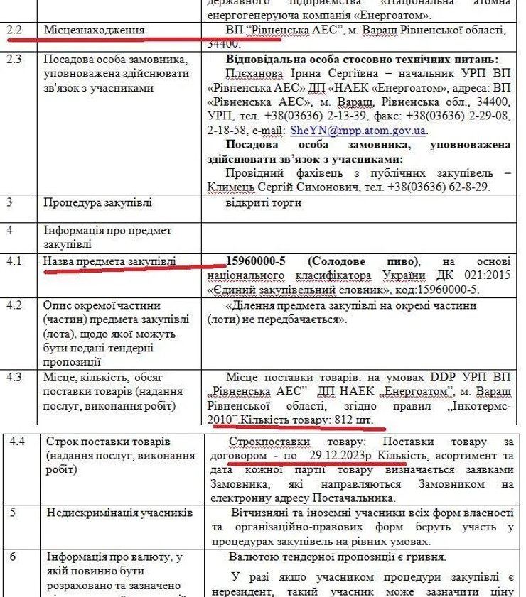 Заявки на постачання пива приймаються з 14 до 22 червня, після чого 23 червня має пройти сам аукціон. Доставити товар на РАЕС необхідно буде до 29 грудня, що дає змогу припустити, що пиво закуповують для свят.