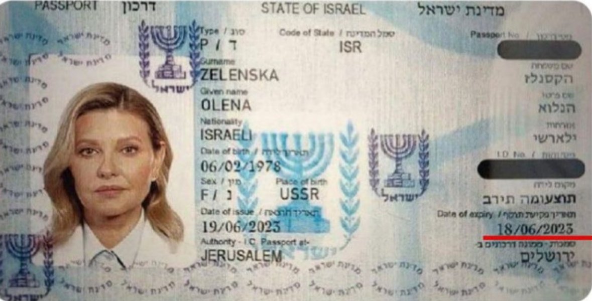Пропагандисти заявили, що такий "документ" дружина Володимира Зеленського, керівника української держави, отримала під час візиту до Ізраїлю. Це нібито відбулося 19 червня 2023 року.