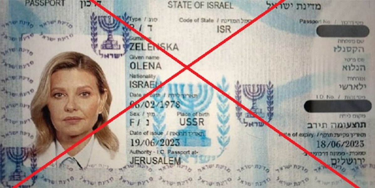 Кремлівські ЗМІ та російські групи у соціальних мережах опублікували неправдиве фото нібито ізраїльського паспорта Олени Зеленської, першої леді України. У пропагандистському Telegam-каналі "Шейх Тамир" опублікована вигадана інформація.