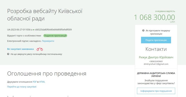 Розробка сайту за понад мільйон гривень | Фото: Київська обласна рада/Facebook