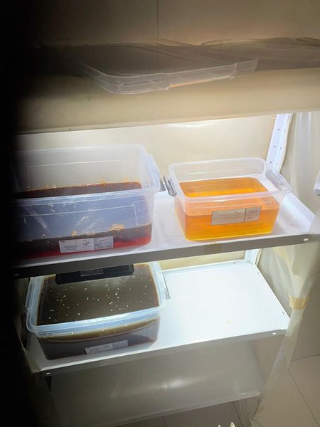 Під час проведення слідчих дій в рамках кримінального провадження, поліцейські встановили місце виготовлення та зберігання наркотику. У ході обшуків за адресою проживання наркодилерів правоохоронці виявили спеціально обладнані приміщення з холодильниками для зберігання вже готового "товару", колби з прекурсорами та реактивами, пластикові місткості з рідинами, ваги та пакувальні матеріали.