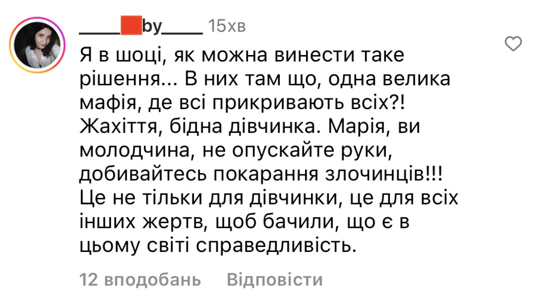 "Чи вистачило суду сміливості це зробити? На жаль, не вистачило. Мені дуже прикро, що через свою малодушність судді фактично прирекли потерпілу дівчинку, у житті якої уже два роки триває це пекло, пройти його спочатку. З усіма допитами, а отже постійною психологічною ретравматизацією", — підкреслила телеведуча.