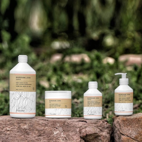 - Лінійка Boomerang.Zero розроблена для кучерявого волосся, яке більш сухе та пористе, тому потребує особливої уваги, щоб забезпечити живлення та зволоження, необхідні для того, щоб локони були чіткі і гарні. Лінія Boomerang.Zero підійде прихильницям кучерів, так як з її формули виключені сульфати, силікони і осушувачі.