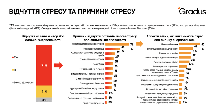 Українці зараз переживають важкі часи через війну. Згідно з дослідженнями соціологічної компанії Gradus Research 71% українців відчувають стрес або сильну знервованість, а за даними МОЗ з початком війни до терапевтів звернулося 650 тисяч українців.