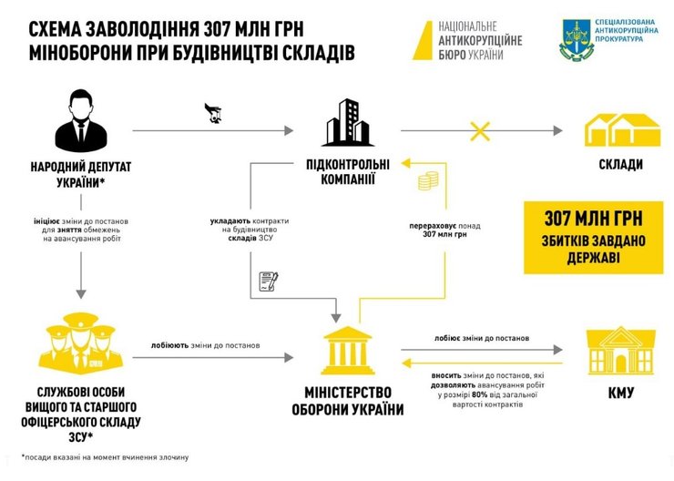 Нардеп планував заволодіти частиною цих коштів. Зробити це йому заважали відповідні законодавчі обмеження, які давали змогу Міноборони сплачувати певний аванс у сумі лише 30% від річного обсягу робіт.